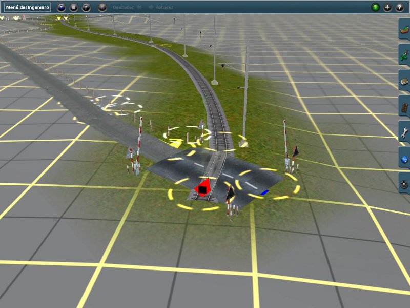 La vía es como si fuera independiente del paso a nivel, pues debería estar enredezada y no lo está en ninguno de los dos pasos a nivel, y cuando borro el paso a nivel se queda la vía y no me deja moverla ni borrarla. También, en la 2ª captura se puede ver que la carretera parece que pase por encima del paso a nivel, el "pfosten" (los indicadores reflectivos de la carretera) están en medio de la vía...