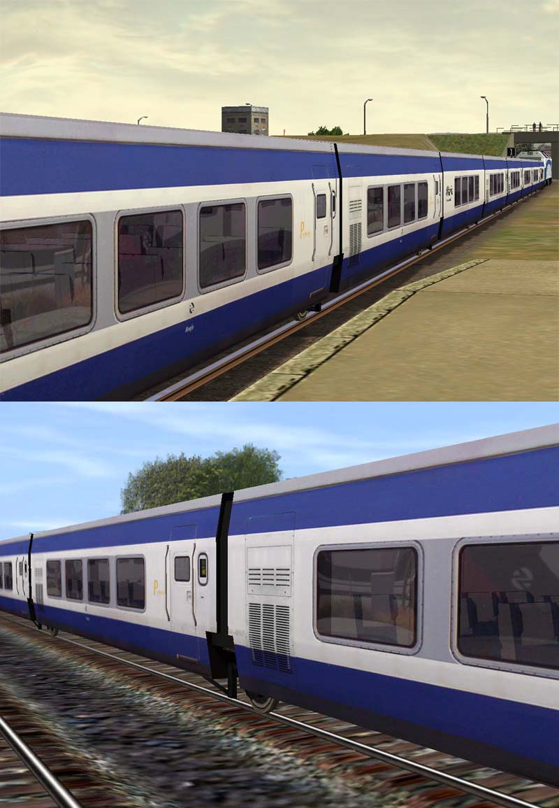 Javier, "po la gloria de mi madre" que llevo más de 15 minutos mirando ambas capturas, y aparte de no apreciar diferencia alguna entre el modelo (porque es básicamente el mismo), en la captura de MSTS me evoca la realidad, algo que puedo tocar y vivir, y en Trainz me evoca el Talgo de Ibertren... por el entorno que le rodea, posiblemente. Pero es un problema absolutamente crónico del Trainz...