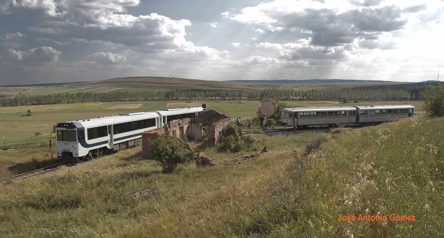 Una imagen maravillosa que resumen en una sola foto toda la historia de ese acontecimiento: La primera ocasión en que se hace un enlace directo de viajeros, que se sepa, entre las líneas de Barruelo y Robla.