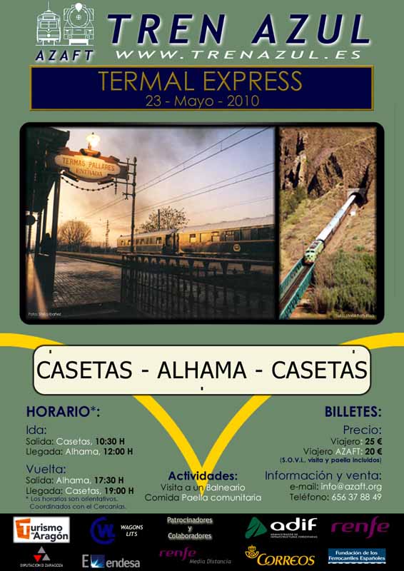 Para mas información y venta de billetes en http://www.trenazul.es o http://www.azaft.org. Os esperamos!!!