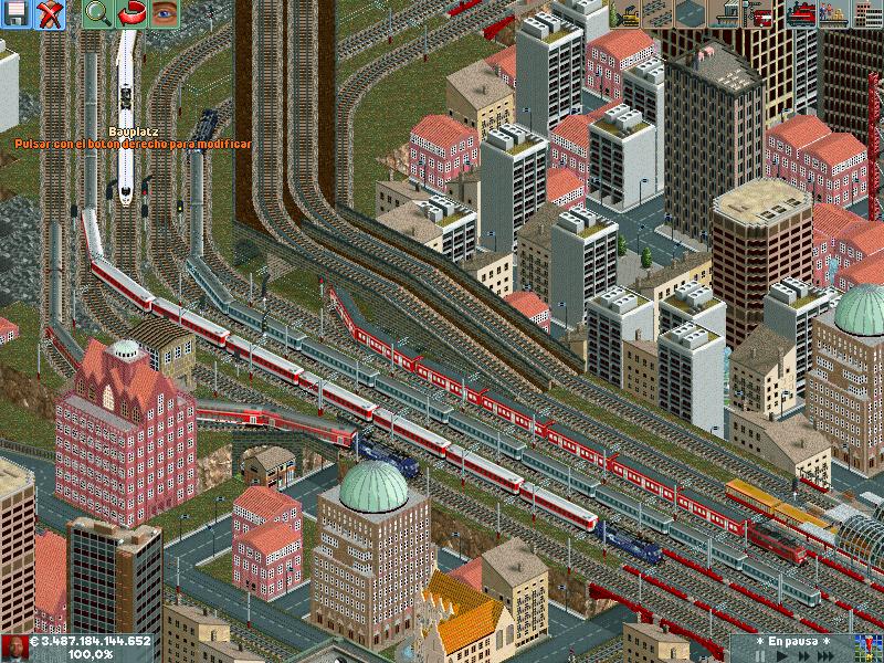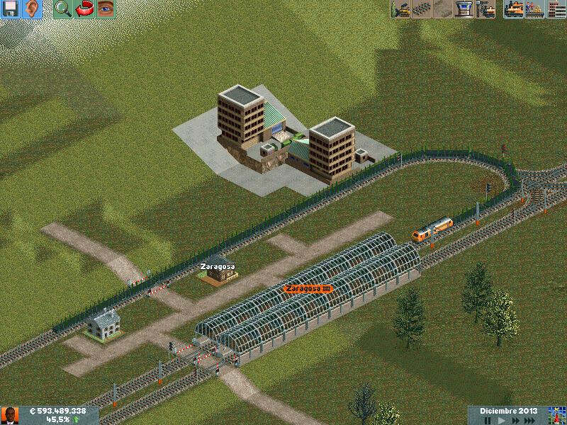 En mis redes procuro separar los trenes por velocidad, ya sea pasajeros o mercancías. Después de muuuuchas horas he conseguido dominar la IA del juego y rara es la vez que algún elemento se me despista (generalmente en obras...)--truco: hacer todo lo que se pueda en ro-ro!. Dejo unas poquitas fotos