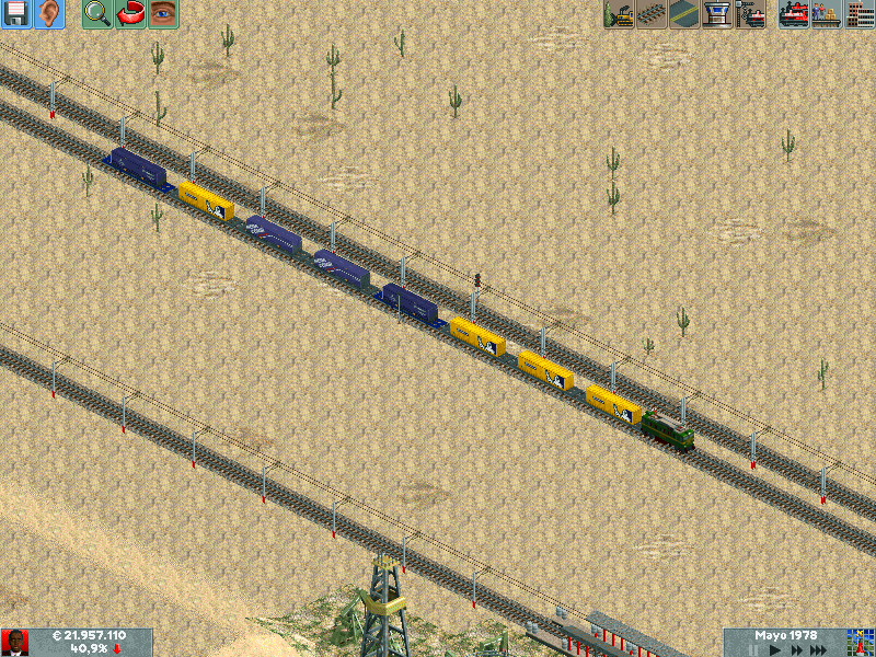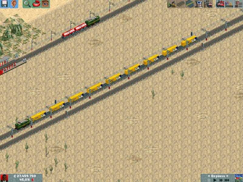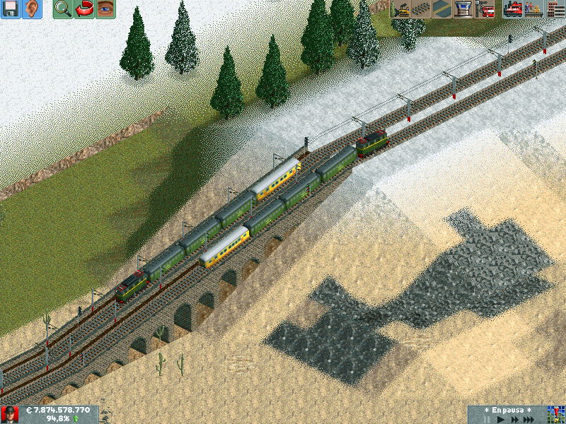 He creado un escenario con nombres aragoneses, asi que manos a la obra! Al crear la empresa he construido un ferrocarril que une la mina de Utrillas con la central térmica de Escucha. Unos años despues se consigue presupuesto para construir un ramal del mismo que une la mina de Albalate de Cinca. Desconozco por que algunas capturas se ven "enteras" por asi decirlo mientras que otras aparecen en los laterales las barritas de subir y bajar... que cosas.