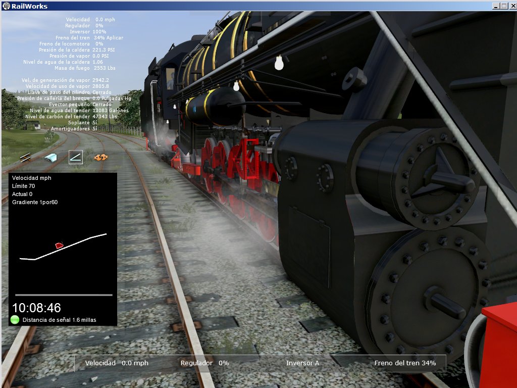 Tiene también cabina propia, con unos bonitos efectos de vapor en los mandos y niveles que le dan gran realismo.