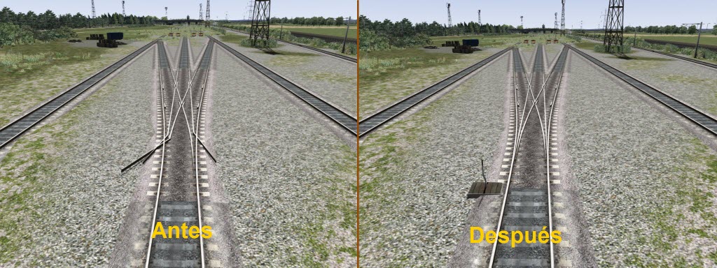 En esta actualización se ha añadido un tramo de vía faltante en la playa de vías de Kimgmoor, que por lo visto lo debí hacer desaparecer cuando reubiqué las toperas, y pasó totalmente inadvertido. :oops: