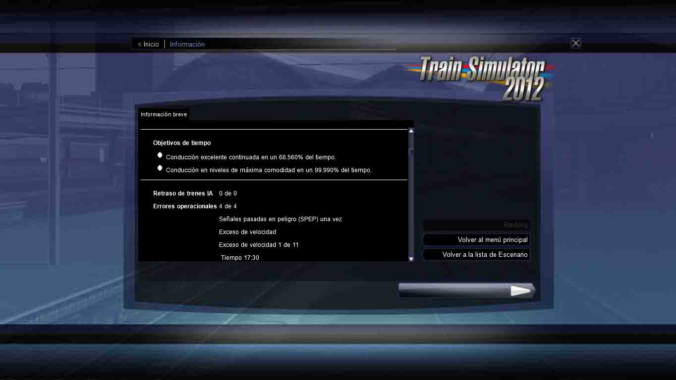 Para pasar el escenario 'Polmadie Hop' hay que ir muy ligerito de velocidad, montar la composición sin hacerle mucho caso a los límites de velocidad del depósito. Si no lo haces así, un tren sale de Glasgow por tu mismo recorrido y te le encuentras parado en la vía bloqueandote el paso.
