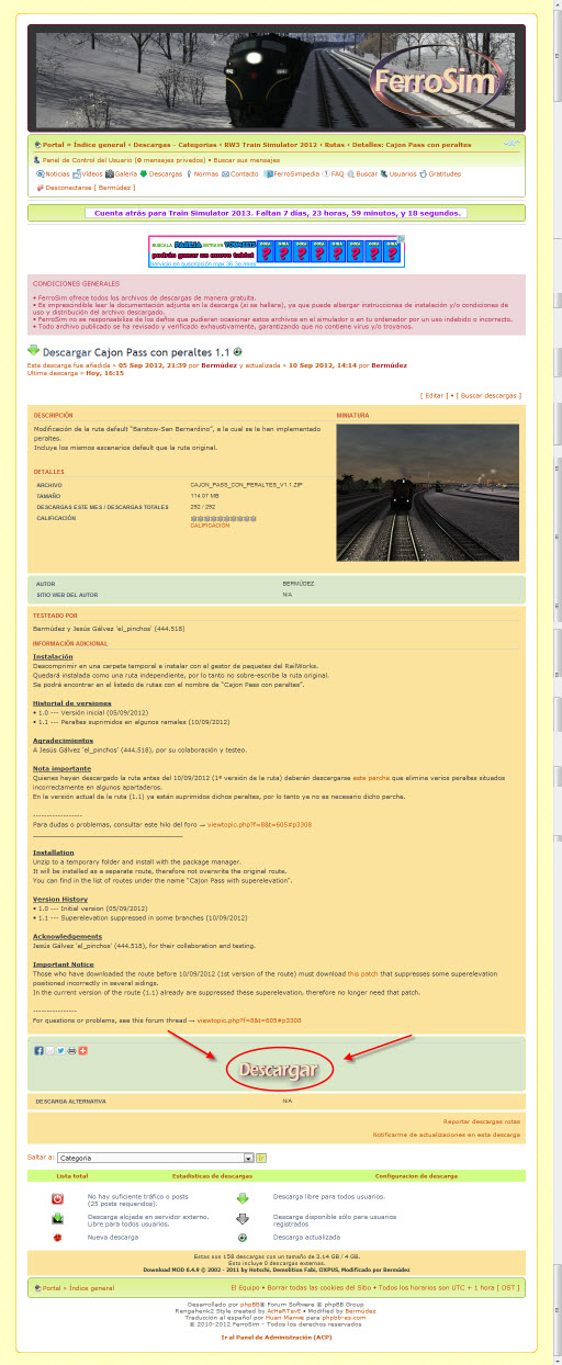 Bermúdez escribió:VITORMARQUES escribió:Estava a me referir às linhas do caminho de ferro que vejo na fotografia. As que me aparecem no simulador são mais feias. Estas parecem muito mais realistas. A rota já a descarreguei e está fantástico. Esta é a minha rota preferida e só faltava mesmo a sobrelevação nas curvas. O realismo da simulação é agora muito mais perfeito. Excelente trabalho.