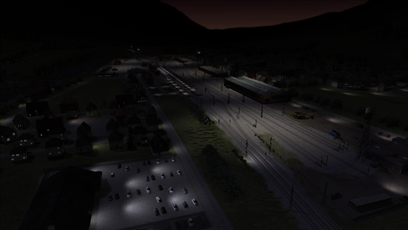 Esto de la iluminación nocturna es algo bastante más complicado de lo que parece. Poner luz creible es una tarea un tanto minuciosa: un puntito en cada farola, otro mayor en las torretas reflectoras, diversas tonalidades... Personalmente creo que la iluminación de la WCML resulta atractiva pero un poco ostentosa, sin adaptarse a la realidad en algunas estaciones y localizaciones. pero vamos, que esto ya es gusto personal. Mi actualización personal de la Seebergbahn me está enseñando que la luz debe ser tratada con moderación sin saturar el paisaje más de lo necesario: