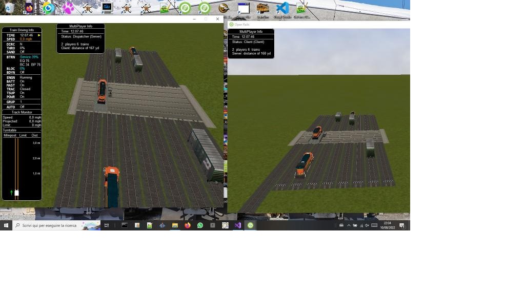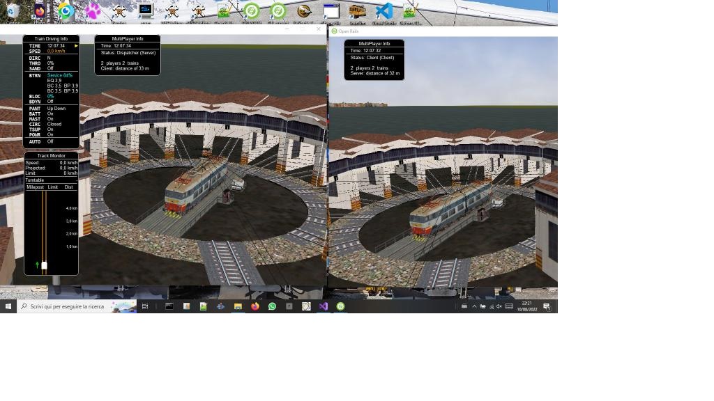 Here two screenshots showing the synchronized operation. It is even possible that one player moves his locomotive to the turntable, and another player rotates turntable and locomotive."