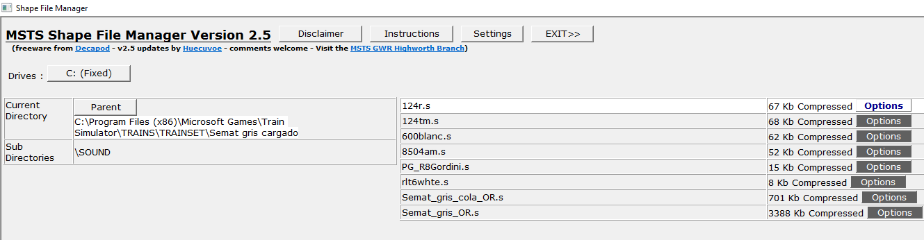 Mr TER, yo tengo, en la misma carpeta del vagón, los .s, .sd y ACE, todos juntos, y me funciona perfectamente. Echa un vistazo al WAG, por si hay algún error. Yo tengo los coches puestos así.