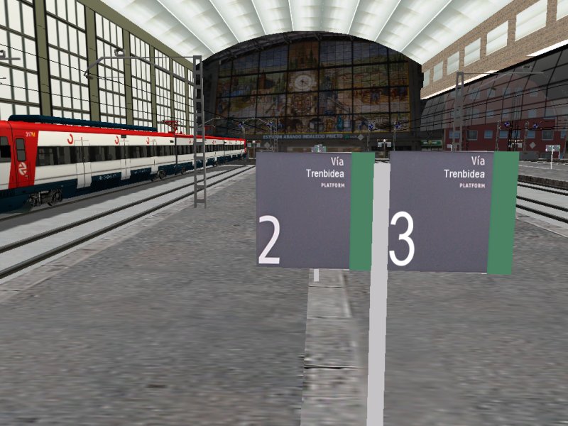 Bueno, ya que esta es la "noche de las capturas" me sumo modestamente, adjunto capturas en detalle de Bilbao-Abando y Llodio. Las pongo porque son las que me he atrevido a modelar por su caracter monumental... luego me gustaría modelar Amurrio porque me encanta, pero me faltan fotos y mano con el modelado 3D. Ya se notará en las capturas que son modelados bastante toscos... la marquesina de Abando no es mía, es de una ruta francesa. La vidriera y los carteles de vía sí los he modelado yo... más que modelar texturar, porque hacer cubos lo hace cualquiera! :oops:
