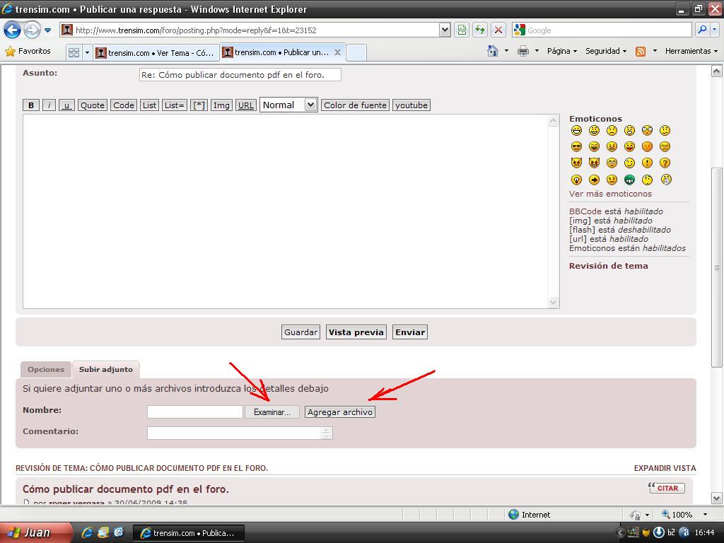2º luego clicas en "Examinar" para buscar en tu pc lo que quieres subir, y luego en "Agregar archivo":