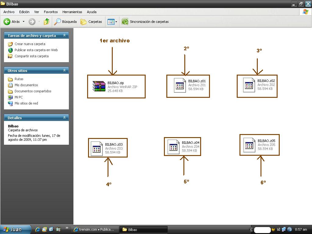 Hola, ¿pero has hecho lo que dice el autor de la ruta aquí => viewtopic.php?p=250841#p250841, lo de renombrar el archivo? O sea que el 2º archivo de los 6 de la ruta, si se descarga como "BILBAO.zip" o "BILBAO.z01.zip" hay que renombrarlo como "BILBAO.z01". Es que no tiene mayor complicación. Y para que aún quede más claro, así deben llamarse los archivos: