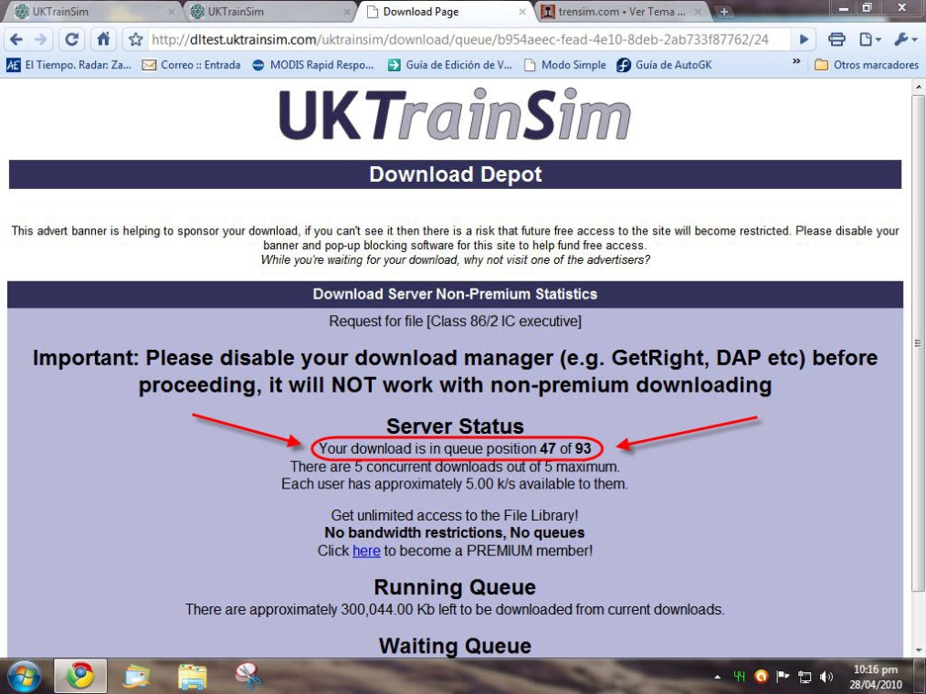 Ya, ya. Si me la he descargado ya es por ganar tiempo :mrgreen: , porque cuando publiques alguna actividad para ella, irá más gente a descargársela y entonces aún se incrementará más la cola de espera de UKTrainSim.