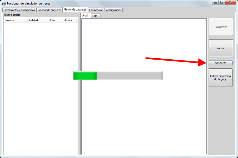 Sí, pero hay que darle al botón "Actualizar", porque si no no, nos muestra nada. Cuando termine la barra de carga, nos aparecerán en la izquierda todos los rwp's que tengamos instalados.
