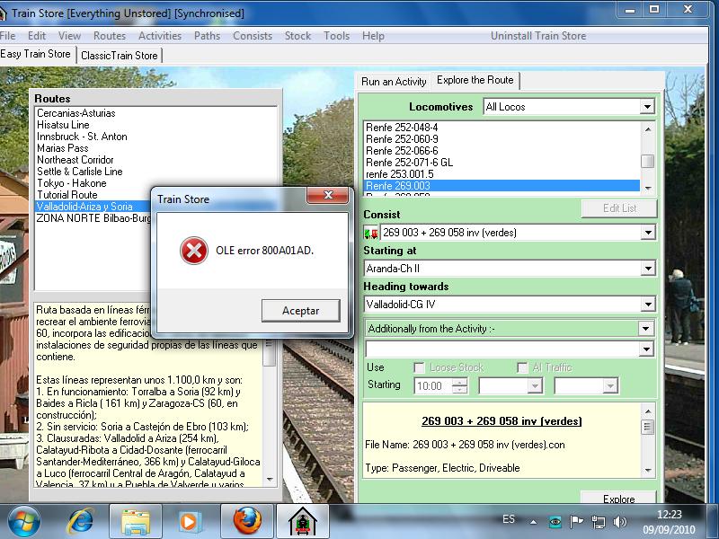El trains tore si no lo puedo poner en castellano casi que me da igual pues de tanto utilizarlo ya se las funciones aunque sea en Ingles, pero si me gustaria poder ver las composiciones cundo pulso en consist y eso es lo que no me deja hacer, y me da el herror que muestro en la captura que no se a que puede ser devido.