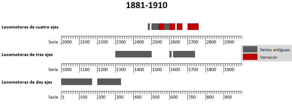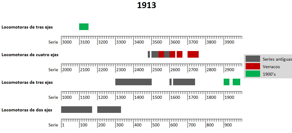 El rango 1001-1999 se reservaba para las locomotoras de tres ejes.