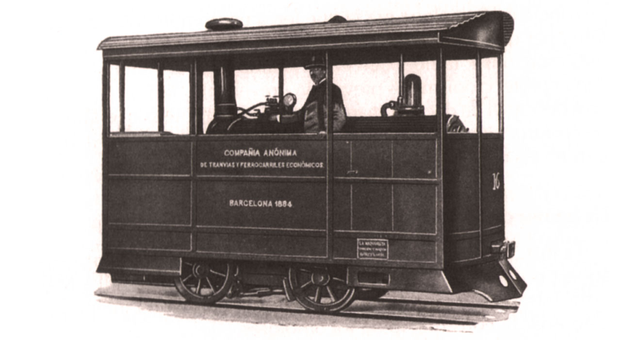 Locomotoras 1 y 2 de la Maquinista Terrestre y Marítima, destinadas al tranvía de Barcelona a Sant Andreu de la Compañía de Tranvías y Ferrocarriles Económicos.