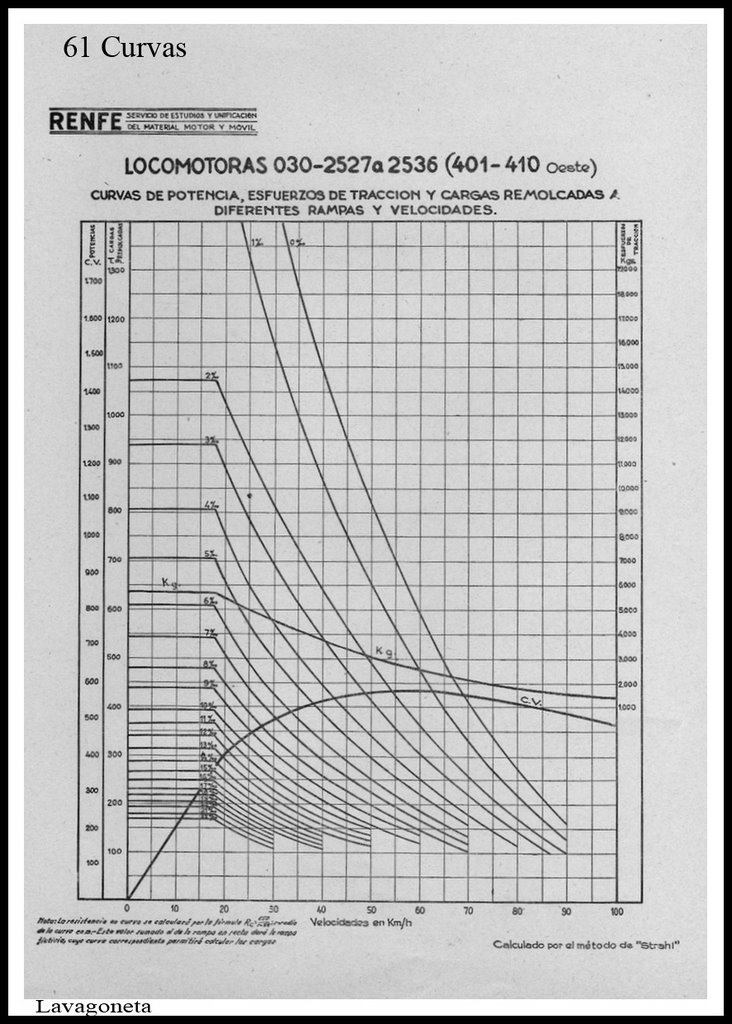 Respecto de las curvas, bien en realidad el simulador no reproduce (sería imposible) todas las variables de la realidad ni por tanto las curvas son equivalentes. El problema por explicarlo brevemente, es que en una locomotora real se obtiene el máximo esfuerzo de tracción con la admisión abierta a tope, y aquél se podría mantendría constante si no fuera preciso reducir la admisión porque con el aumento de velocidad (y por tanto de los ciclos de entrada y salida de vapor) llega un momento en que el vapor literalmente no es suficiente para trabajar en el cilindro. Por lo tanto, a partir de determinada velocidad se ha de reducir la admisión, lo que obviamente supone menos vapor trabajando y una reducción de dicho esfuerzo, que decrece hasta la velocidad límite. Aún asi se puede mover el tren porque en la práctica se ve compensado de alguna manera por la inercia. Después habría que considerar como variables, como afecta la mayor velocidad ( y por lo tanto el escape) a la capacidad de producción horaria de la caldera, como la velocidad afecta al rendimiento mecánico de la máquina, el tipo de distribución, la adherencia, las rampas y mil cosas.