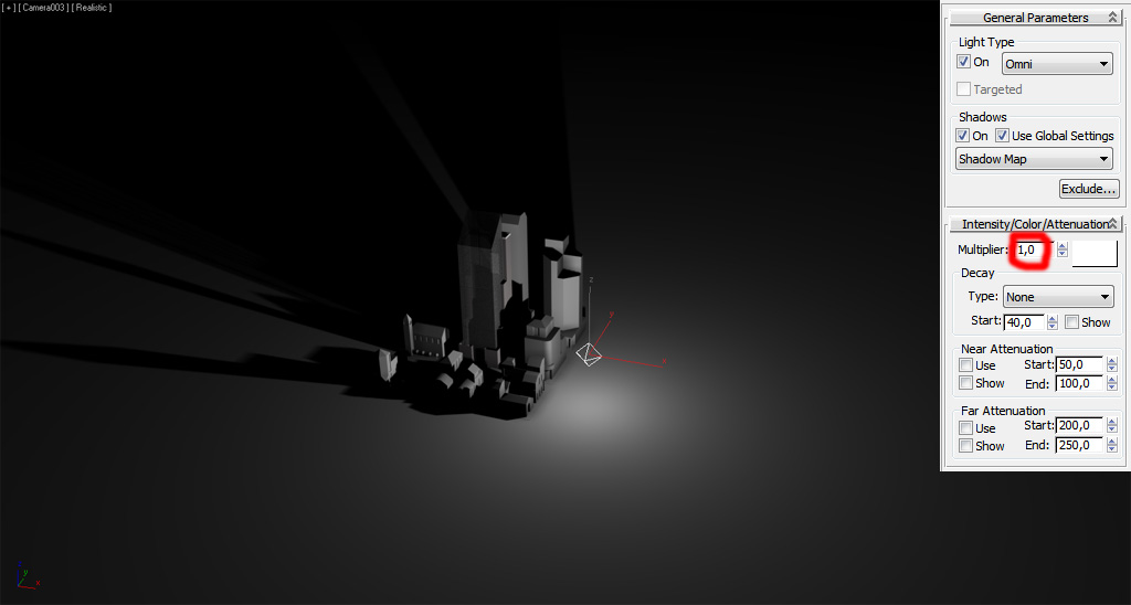 Como las luces "Point" u "Omni", podemos ajustar el multiplicador/intensidad: