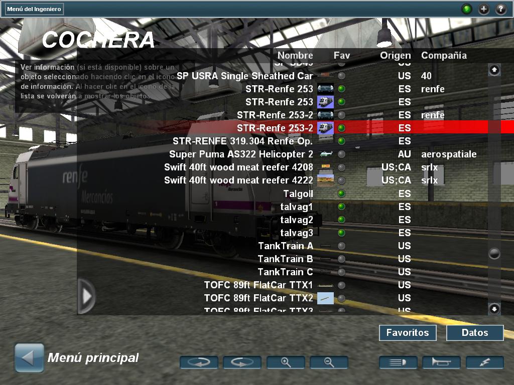 Bueno probando con otro simulador en este caso el trainz 2012 que me he descargado desde Steam, he observado que cierto material se instala correctamente a través del ContentManager.exe y luego se puede visualizar en la cochera(Menú del ingeniero), pero hay otro que instalo y no se visualiza luego. Ignoro el motivo ya que los pasos que empleo son los correctos en la instalación. Se que hay otro comentario al respecto en este mismo hilo pero me gustaría si es posible que me lo aclararan esto mejor ya que he probado todos los pasos que se comentan y nada de nada.